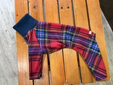 レッドタータン七分丈ズボンロンパ(冬、男の子既製服L)